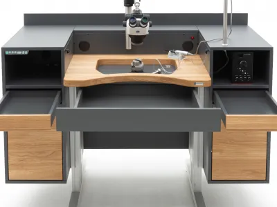 Les horlogers, les orfèvres, les sertisseurs ainsi que les experts en postes de travail en salle blanche trouveront chez nous un choix complet d'établis de qualité. Nos gammes de produits Modular, Ergonomic et Unique offrent une solution adaptée à chaque exigence. Alors que notre configurateur de table vous permet de concevoir les séries MODULAR et ERGONOMIC selon vos besoins, nous sommes prêts à réaliser vos souhaits uniques avec notre système UNIQUE . Découvrez la combinaison parfaite de fonctionnalité, d'ergonomie et de design individuel pour votre poste de travail.